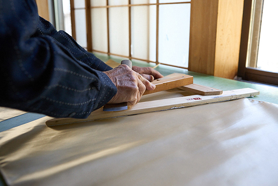 中でも前原光栄商店様の代名詞ともいわれる16本骨の傘は、開いた時に思わず目を引く美しいフォルムが魅力で、修理対応も永続的に行なっているとのこと。