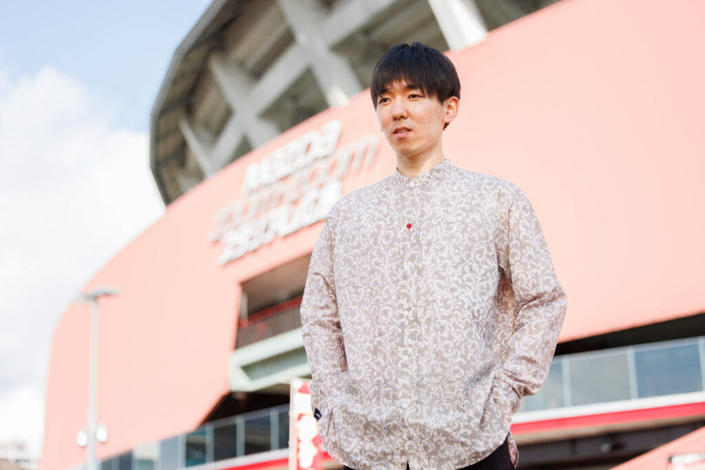 そして両袖と第2ボタンのボタンホールを赤くし、ボタンは第2ボタンのみ赤くすることで、カープの赤は忘れずに。