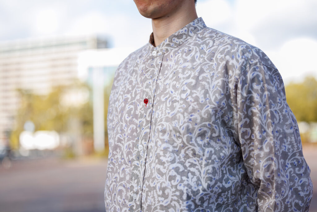 インドのお店では襟のないシャツを多く見かけたことから、形はバンドカラーシャツに決めました。