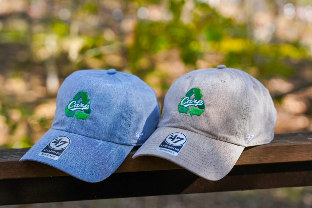 デザインはこのキャップの特性に合わせ、リサイクルマークをカープ仕様にアレンジ。