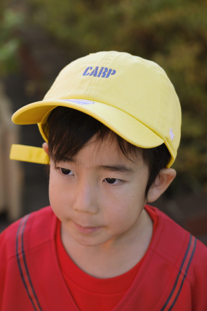 元気なちびっこカープファンがいっぱい動いて汗をかいても蒸れにくいメッシュキャップ。