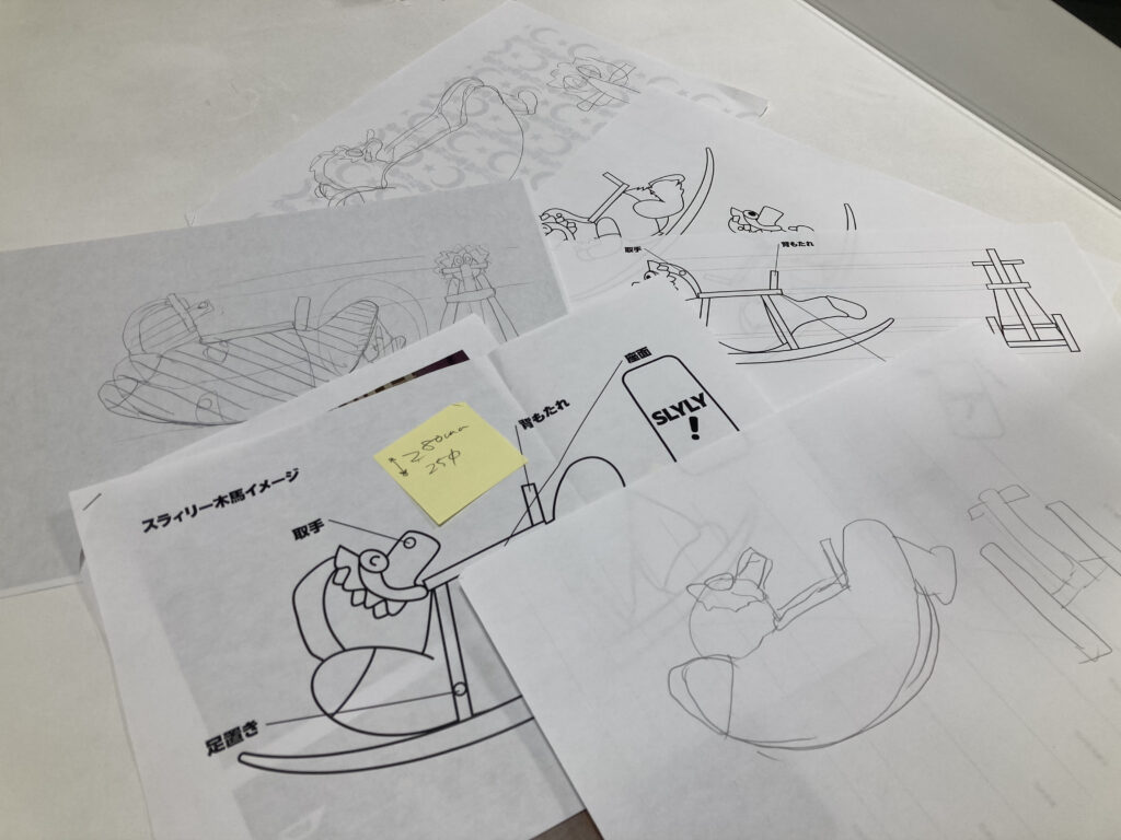 良さそうなアイデアですがどうやって現実にするか…?自分の発想が憎たらしい!具現化するまでの格闘が始まります。私、木馬の製造を経験したこともありませんし、なんなら木馬で遊んだ記憶もありません。しかしイメージは強固。私の中の木馬を具現化していただける業者さまを手探りで探していたところ、広島県三原市のT工房に製造をお願いできることになりました。なんとも灯台下暗し!